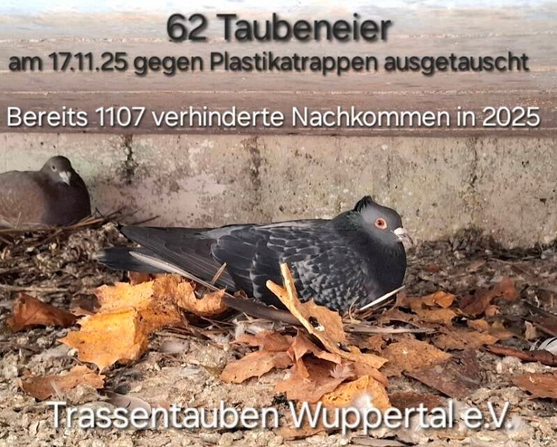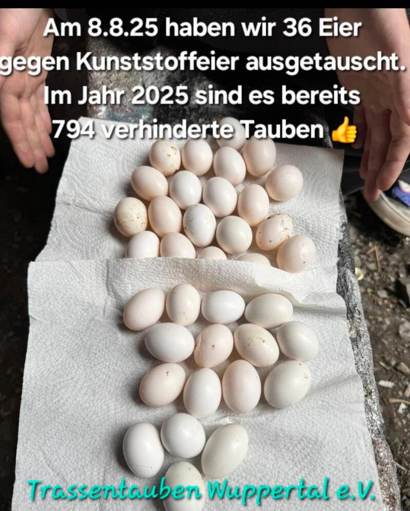Aktuelle Zahlen: In 2025 haben wir bisher 340 Taubeneier gegen Plastikatrappen ausgetauscht.