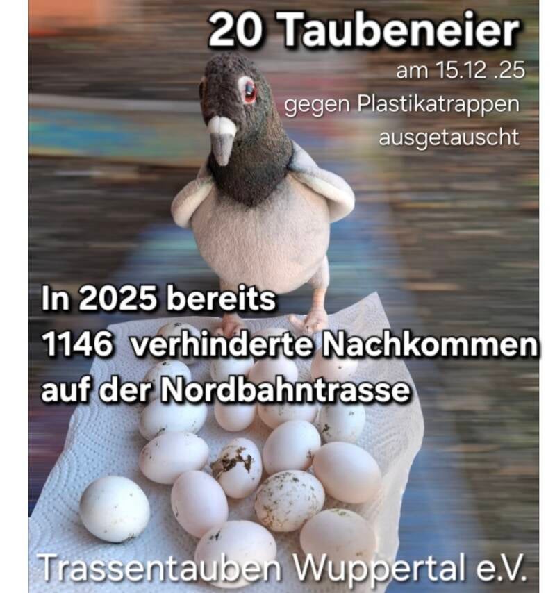 2.163 ausgetauschte Taubeneier und somit 2163 verhinderte Tauben auf der Nordbahntrasse.